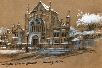 Picture of Hanwell Methodist Church in the snow in 1906